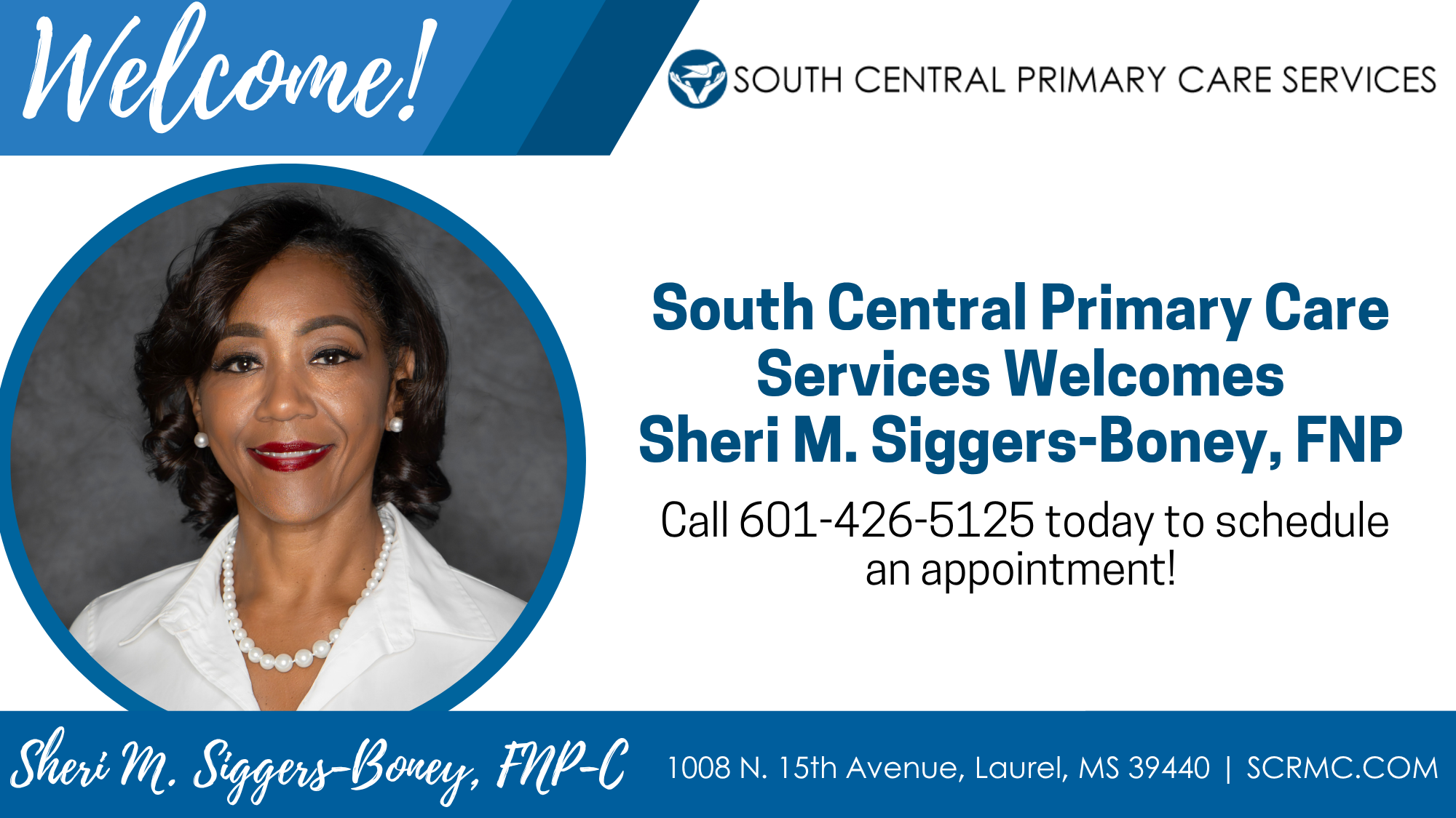 Sheri M. Siggers-Boney, FNP, is a Hattiesburg native who has worked in the nursing field since 1990, when she first earned her certificate of practical nursing. She later earned her Bachelor of Science in nursing from the University of Mississippi Medical Center in Jackson in 2006 and her Master of Science in nursing, family nurse practitioner, from Delta State University in Cleveland in 2008. New patient appointments are accepted by calling 601-426-5125.
