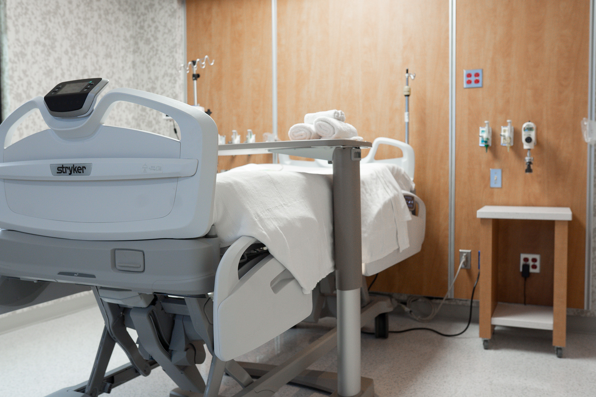 Each room also includes a 55‑inch or 65‑inch interactive television screen, featuring MyChart Bedside. MyChart Bedside is a special version of MyChart that lets patients view real-time information about their care during an inpatient stay. In the near future, additional equipment will be installed in the rooms to allow patients to remotely interact with nurses and other practitioners.